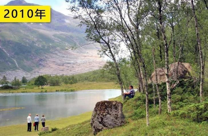 1889年,这里还是一片空白的土地,覆盖着一层数米的冰层。120年后,桦树和幼林在这里生长。冰川融化,绿色的草地出现在它的位置。