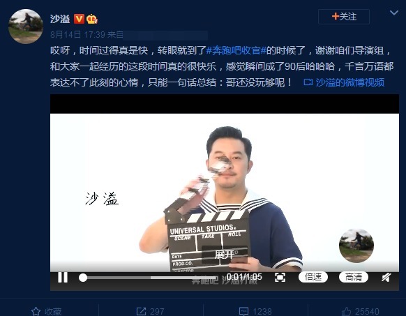 作为新加入进来的常驻嘉宾,沙溢的字数是最多的,总结起来就是他在节目里面玩得很开心,然后自己还没有玩够呢。不得不说这一季有沙溢真的是点睛之笔,沙溢在《奔跑吧》当中的地位很明显,就是负责搞笑的,而且他自身的综艺感确实也很强。主要是因为《极限挑战》的原因,现在很多人看到他那张脸就想笑,这一季《奔跑吧》如果没有沙溢的话,很多网友早就不追了。